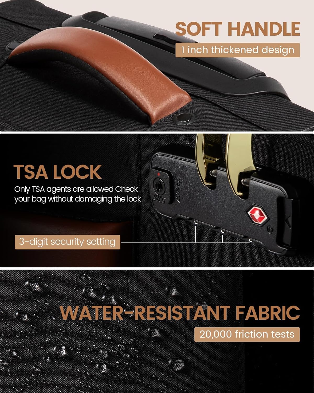 - 【Bewahren Sie Ihre Sachen sicher auf】 Ausgestattet mit einem TSA-zugelassenen Schloss bietet dieses Gepäck die Gewissheit, dass Ihre Sachen sicher sind. Robuste Konstruktion und hochwertige Materialien sorgen für Langlebigkeit.