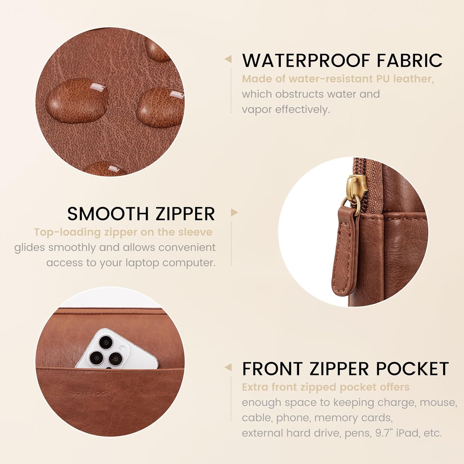 - WASSERABWEISENDES PU-LEDER - Die Laptop-Hülle besteht aus wasserabweisendem PU-Leder, das Wasser und Dampf effektiv abhält. Machen Sie sich keine Sorgen, dass Ihr Laptop und Zubehör durch Spritzwasser oder Regen nass werden.