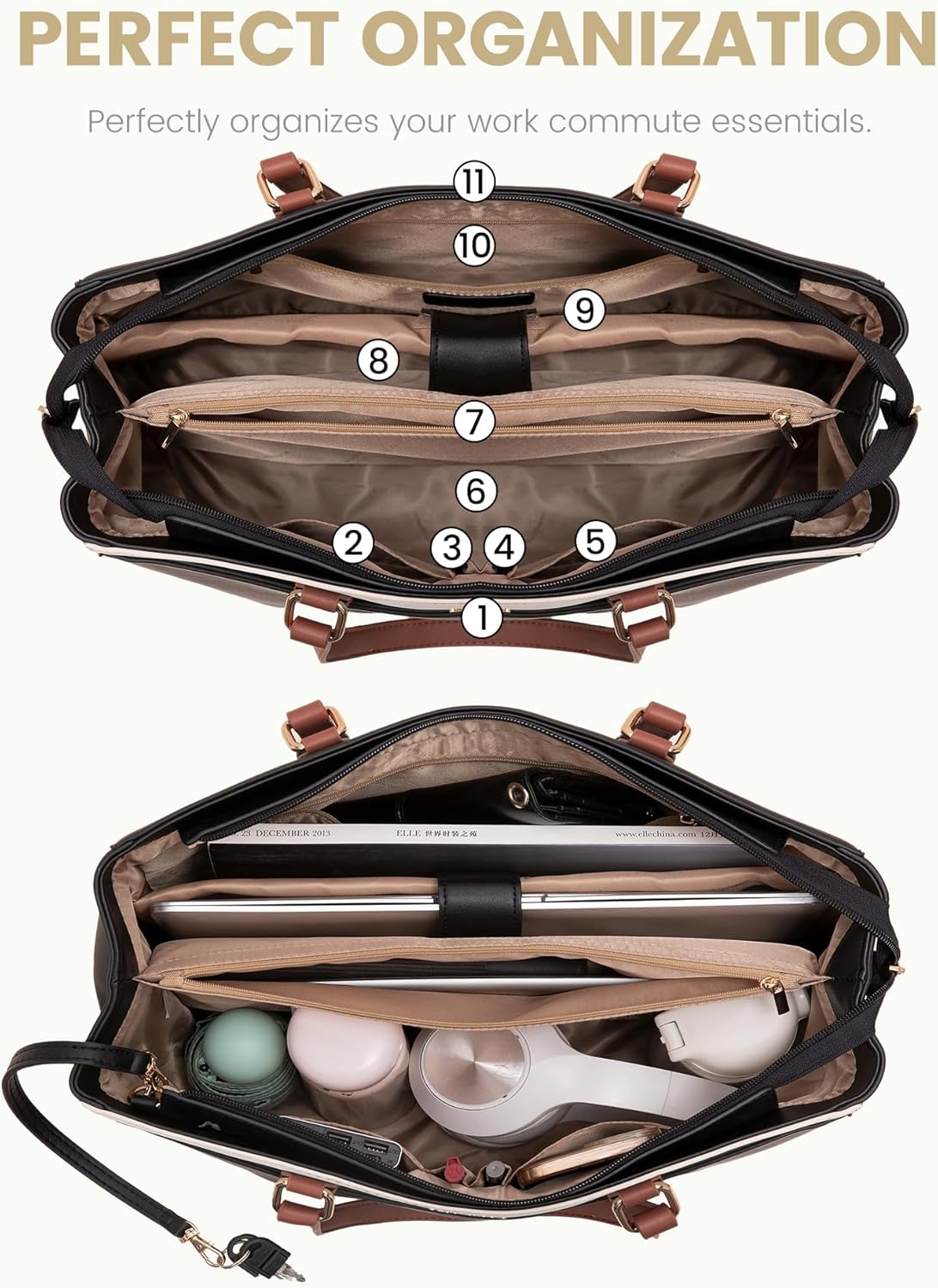 • Versatile for All Occasions: The work tote bag's stylish design and functionality make it ideal for any occasion. Its high quality and versatility allow the business tote bags to transition seamlessly from professional to casual settings. Whether for work or leisure, this laptop bag complements your style and elevates your look, making it a must-have fashion piece in your wardrobe. This tote purse is an exceptional gift for girlfriends, wives, mothers, teachers, nurses, and lawyers.