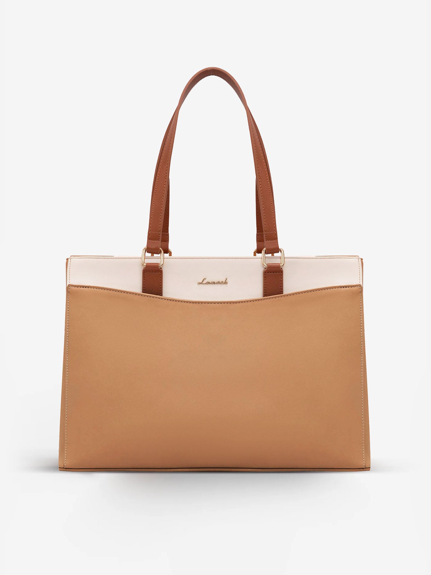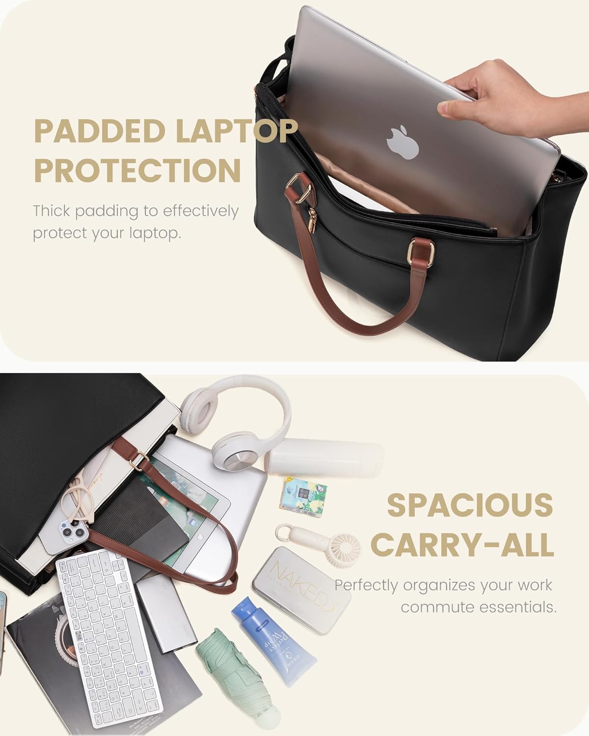 • Premium Materials & Durability: This leather laptop tote bag for women is crafted from waterproof, scratch-resistant PU leather, providing a soft yet sturdy texture for daily use. Smooth metal zippers enhance durability and protect contents, while waterproof fabric keeps items dry. The handle is made from high-quality materials, having passed load-bearing tests to ensure it won't break easily.